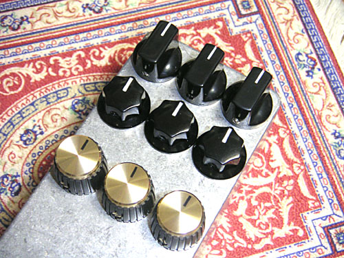 本家は横1列に並べているけど、MXRサイズに収めたいのでノブの配列は3個2個になる。 好みの形で横に3個並ぶのがどうも見つからず、何種類か買ってサイズを計ってみた。今回余って使わなくてもいつか使うでしょー。 ノブの名称はGarrettaudioさんのところに合わせた。 計測はデジタルノギスで。端数は若干丸めた。 写真上からで、直径は 「コントロ-ル」が19(57)mm 「ジェネラルA」が19.8(59.4)mm 「Marshallスタイル」が18.6(55.8)mm カッコ内は3個並べた時の数字。 ちなみにケース(TAKACHI HD11-6-3もしくはハモンド1590B)の公称外寸横幅は60.5mmってことになってるけど、実測では1mm少なかった。さらにハジっこはRが付いてるから実質的に使えるのは56.6mmくらい。 となると収まるのは「Marshall」、ギリで「コントロール」。 本当は「ジェネラルA」を使いたかったんだけど、ちょっとだけハミ出すのがよろしくない。 まぁ作ろうとしてるのがガバナなんだから、ここは「Marshall」でいこうかなと。 形としてはチキンヘッドが好きなんだけど、そりゃもう全然無理だよなー。 全然関係ないけど、いつも写真で下に敷いてあるのは「ペルシャ絨毯柄」のマウスパッドです。高級そうに見えるんで。アホか。 PR |